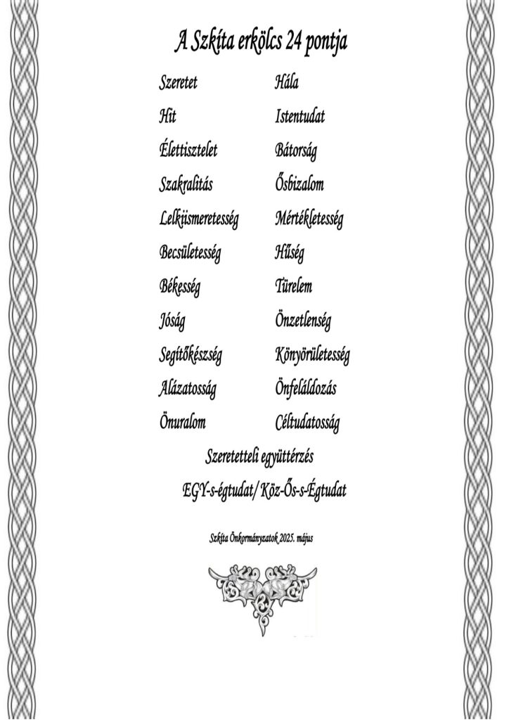 Őseink erkölcsi tartását 24 pontban foglaltunk össze.